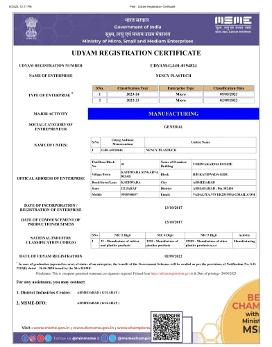 Certificate No: UDHYAM-GJ-01-0194824 Business Registration